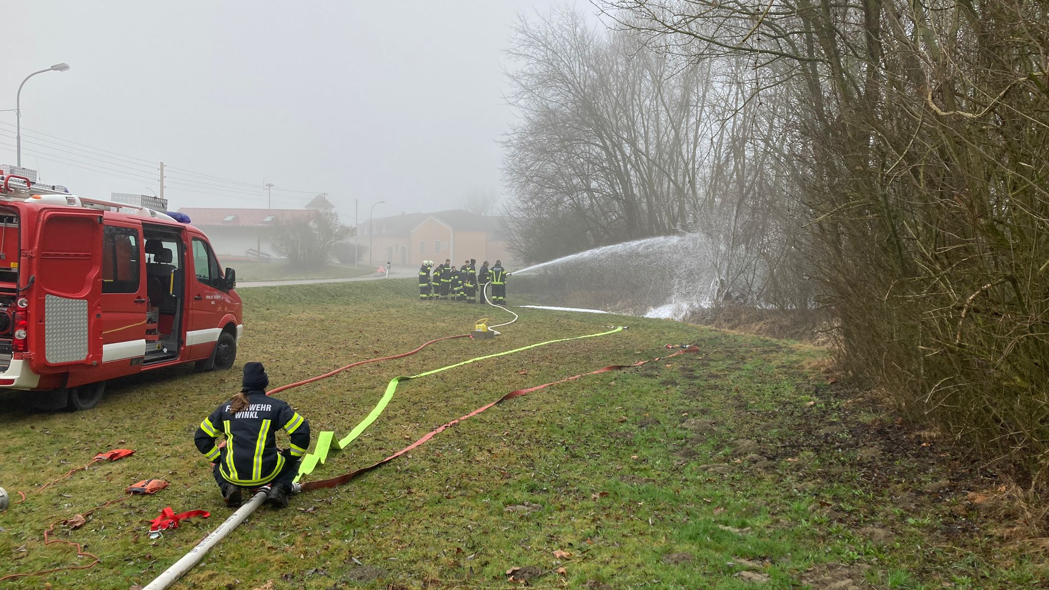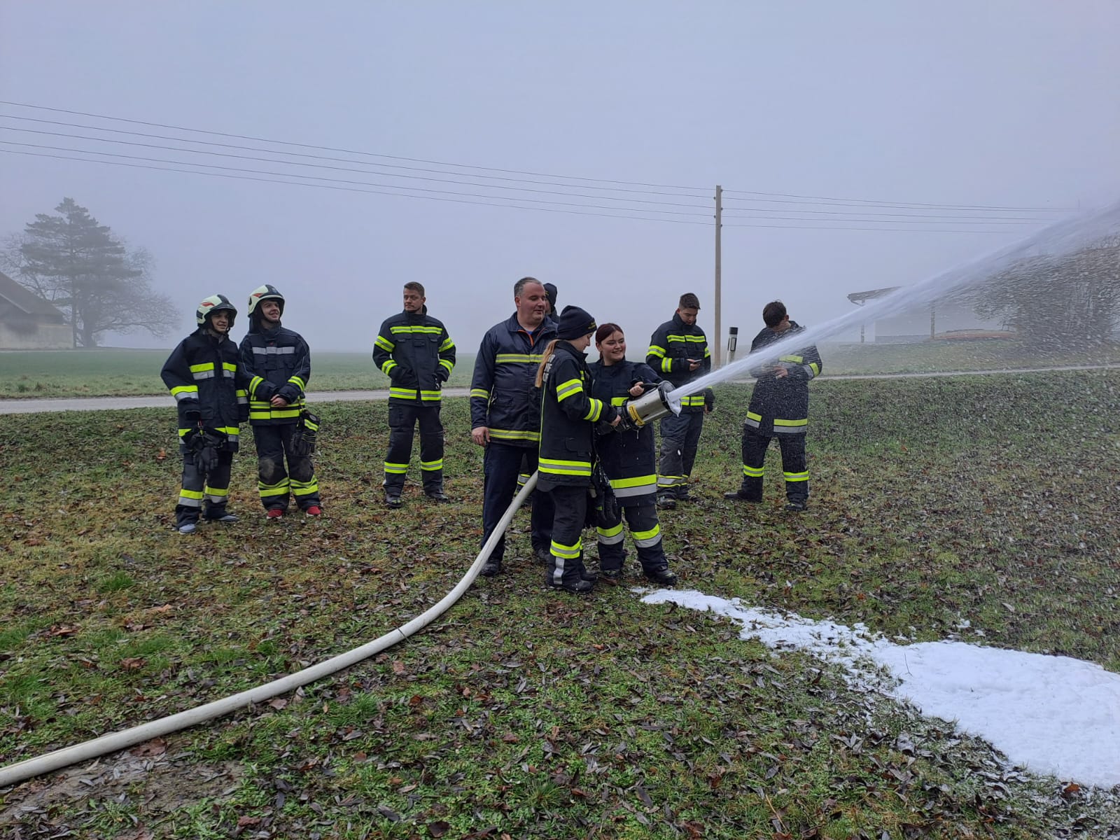 Hierzu wurde schon vor Beginn der Basisausbildung von der gastgebenden Feuerwehr Winkl eine komplette Löschleitung aufgebaut. Die Teilnehmer wurden zuerst in den einzelnen Geräten unterwiesen und mussten im zweiten Teil diese Themenblocks erklären. Anschließend wurde der Umgang mit den Strahlrohren geübt.