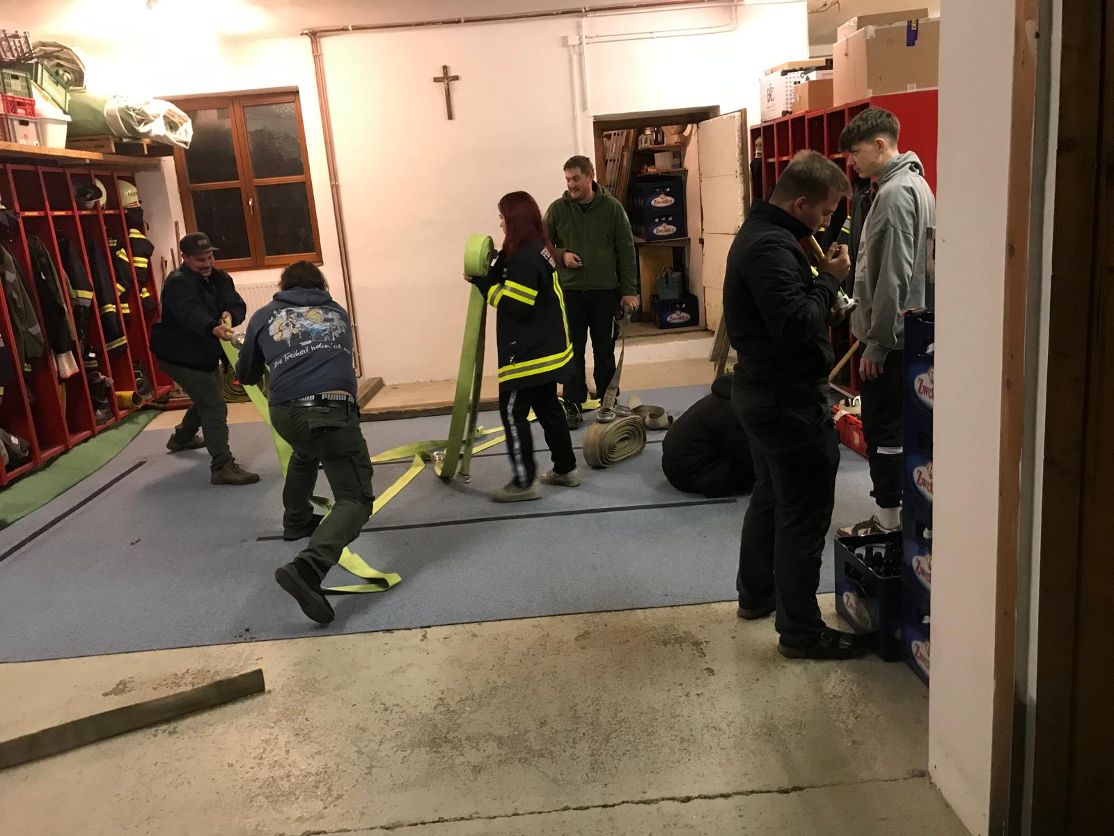 Darum wurden am Montag alle unsere Schläuche von den Kameraden auf Dichtheit überprüft. Dabei wurden einige Schläuche ausgeschieden, etliche kleine Schadstellen entdeckt und gleich behoben, bevor diese akut werden können.