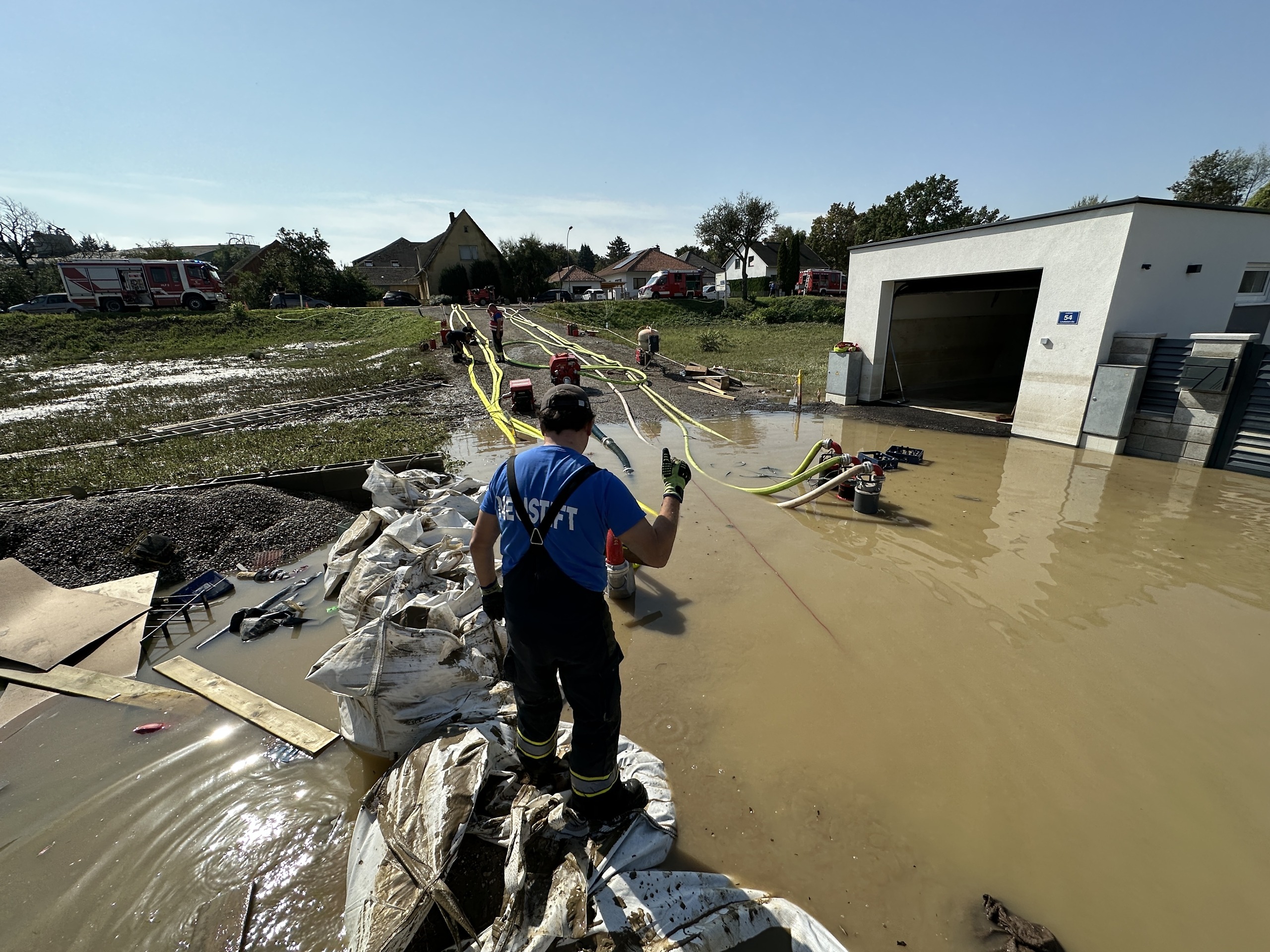 Vorige Woche waren wir mehrmals im Einsatz, um die Folgen des Hochwassers für die Bewohner von Judenau abzumildern. Unser Aufgabengebiet erstreckte sich von Auspumparbeiten über das Ausräumen von Kellern und Häusern bis zur Beseitigung umgeknickter Bäume. Hervorzuheben ist die gute Zusammenarbeit mit der FF Judenau, zahlreichen anderen Feuerwehren und dem Bundesheer.