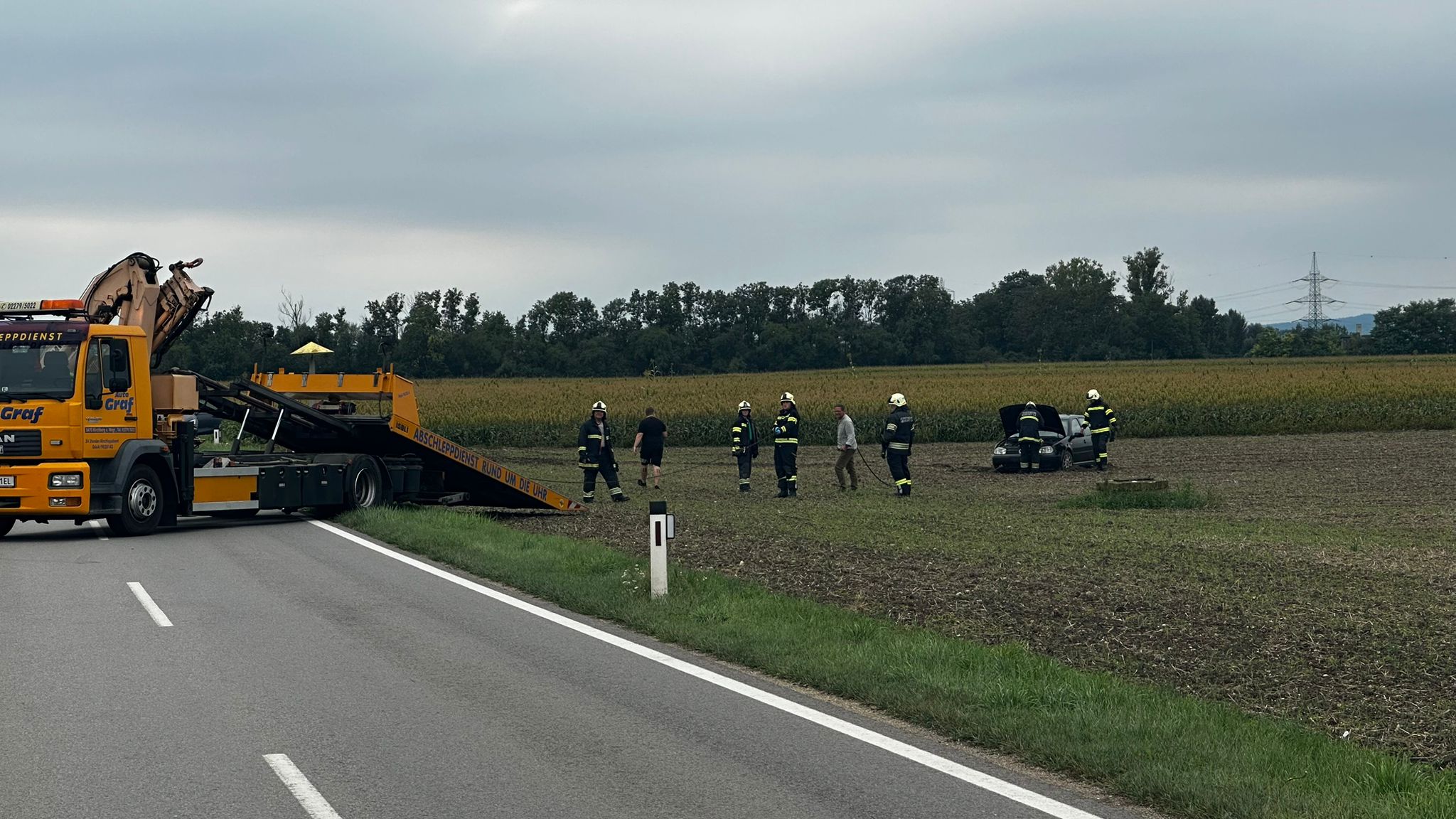 Der örtlich zuständige Abschleppdienst vom Autohaus Graf (Kirchberg am Wagram) übernahm anschließend die Bergung des Fahrzeuges.