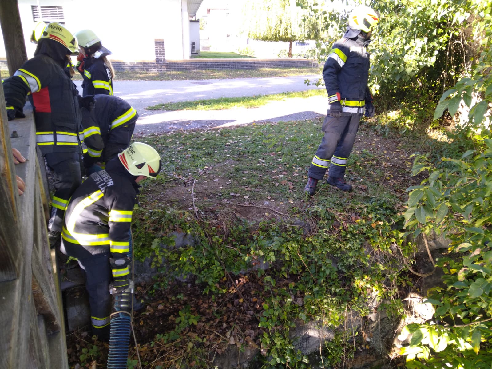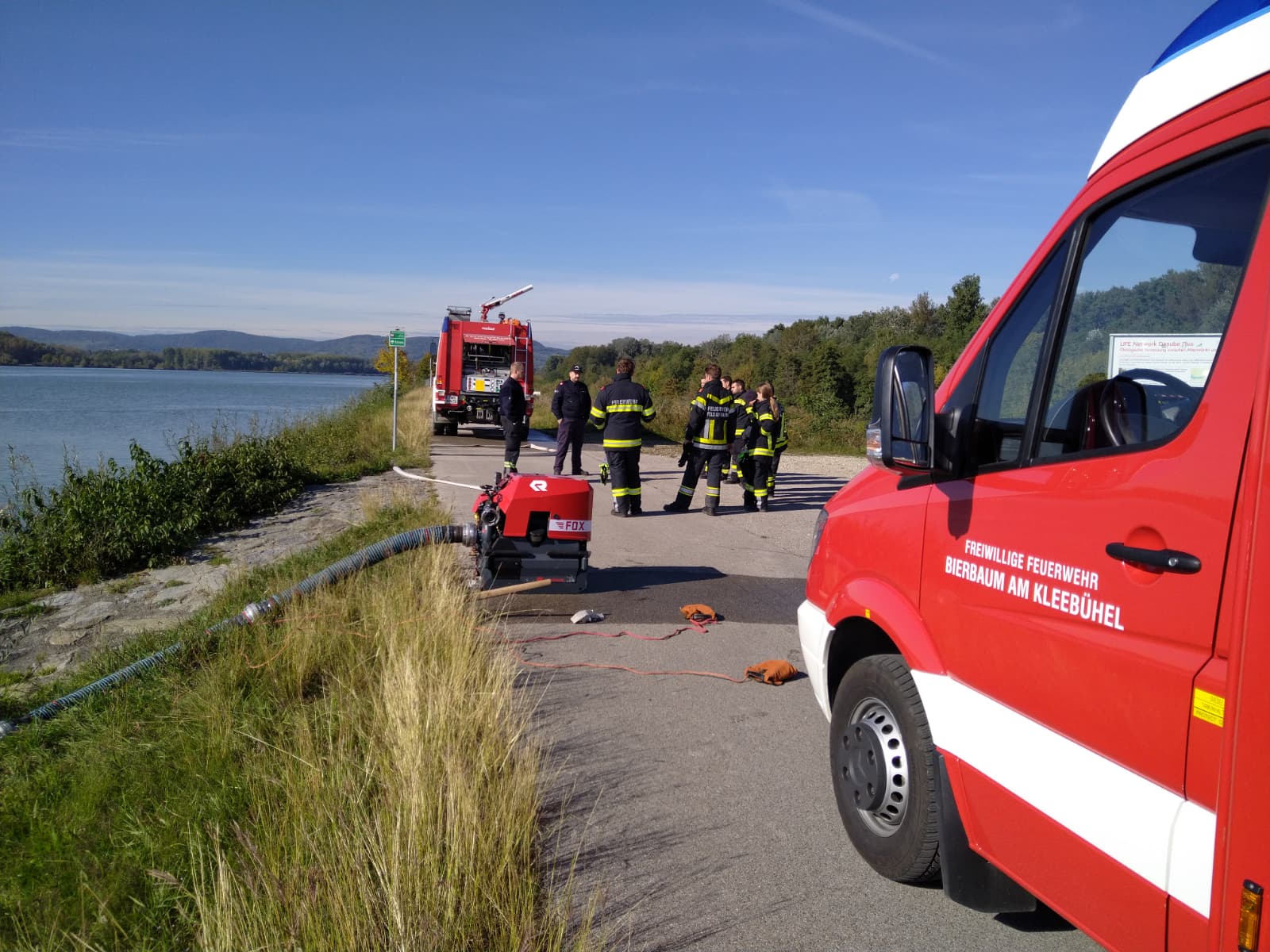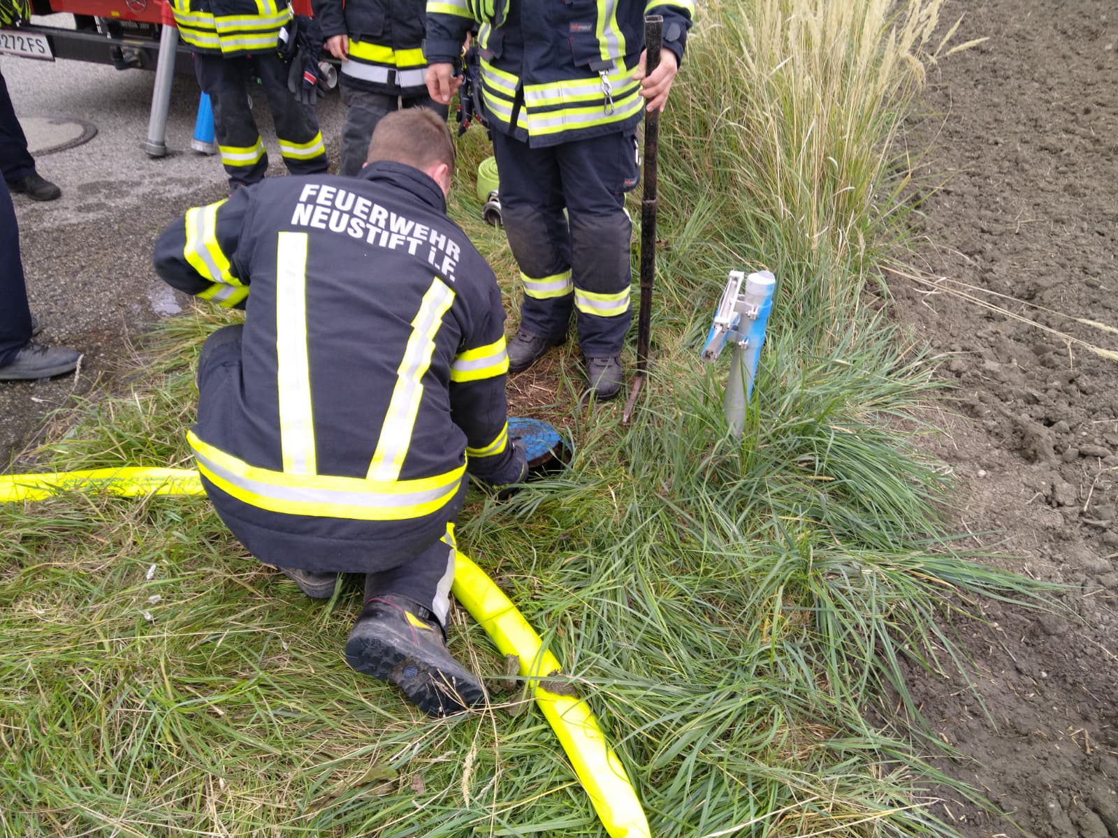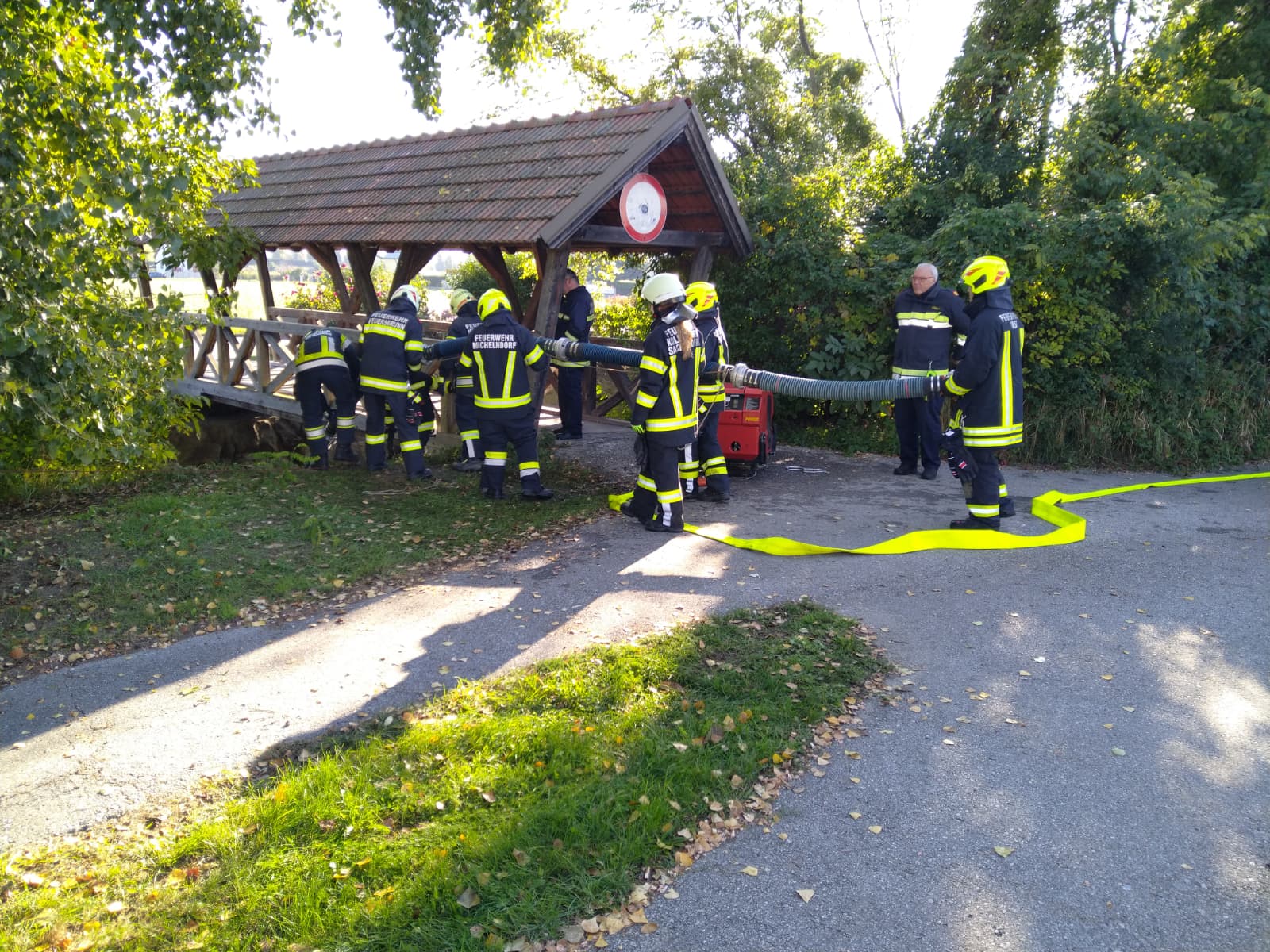 Ein besonderer Schwerpunkt war eine gemeinsame Übung in der Feuersbrunner Kellergasse, bei der eine mehrere hundert Meter lange Schlauchleitung über eine Steigung verlegt wurde – ideal, um die zuvor erlernten Berechnungen in die Praxis umzusetzen.